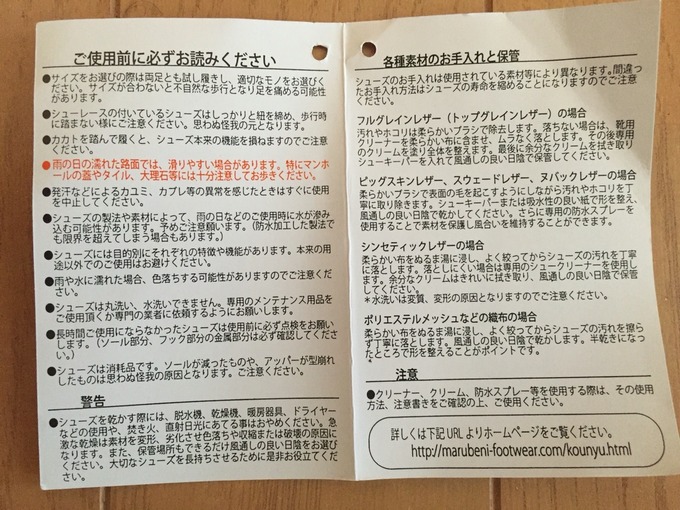 ▼取り扱いの注意も入ってます。あまり濡らしちゃいけないそうです。また、濡れた路面では滑りやすい場合があるとか。マンホールの上は注意だな。。。