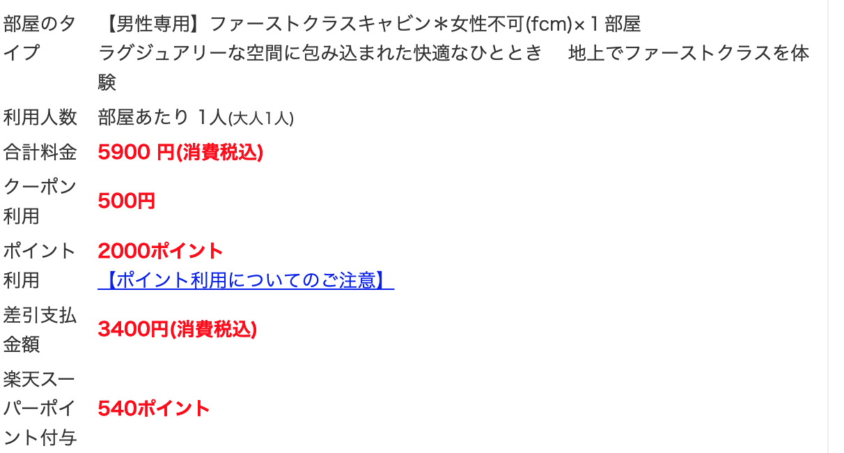 楽天トラベルからポイントを使えば、さらに安く泊まれます。で、支払ったお金分にはポイントも付いちゃう。素晴らしいコスパじゃないですか?